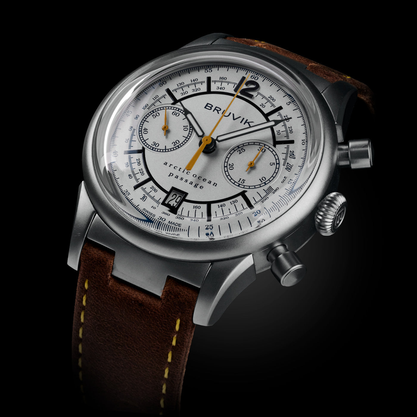 Powered by the Sellita SW510 Elaboré manual chronograph movement, the Arctic Ocean Passage is built for enthusiasts who value mechanical purity. With an impressive 63-hour power reserve, this hand-wound engine is a celebration of craftsmanship and control — echoing the slow, deliberate rhythm of Arctic timekeeping.