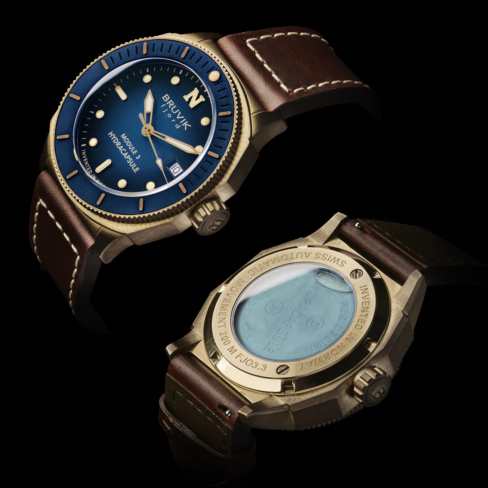 Every bronze color variant of the Fjord Hydracapsule® is produced in just 197 individually numbered pieces, a number chosen to match the official count of fjords in Western Norway. Each watch comes with both an FKM rubber strap and a patinated leather strap, both with quick-release functionality and refined closures. These limited editions are not just collector’s items — they are storytelling instruments that connect the wearer to one of the world’s most beautiful and powerful landscapes.