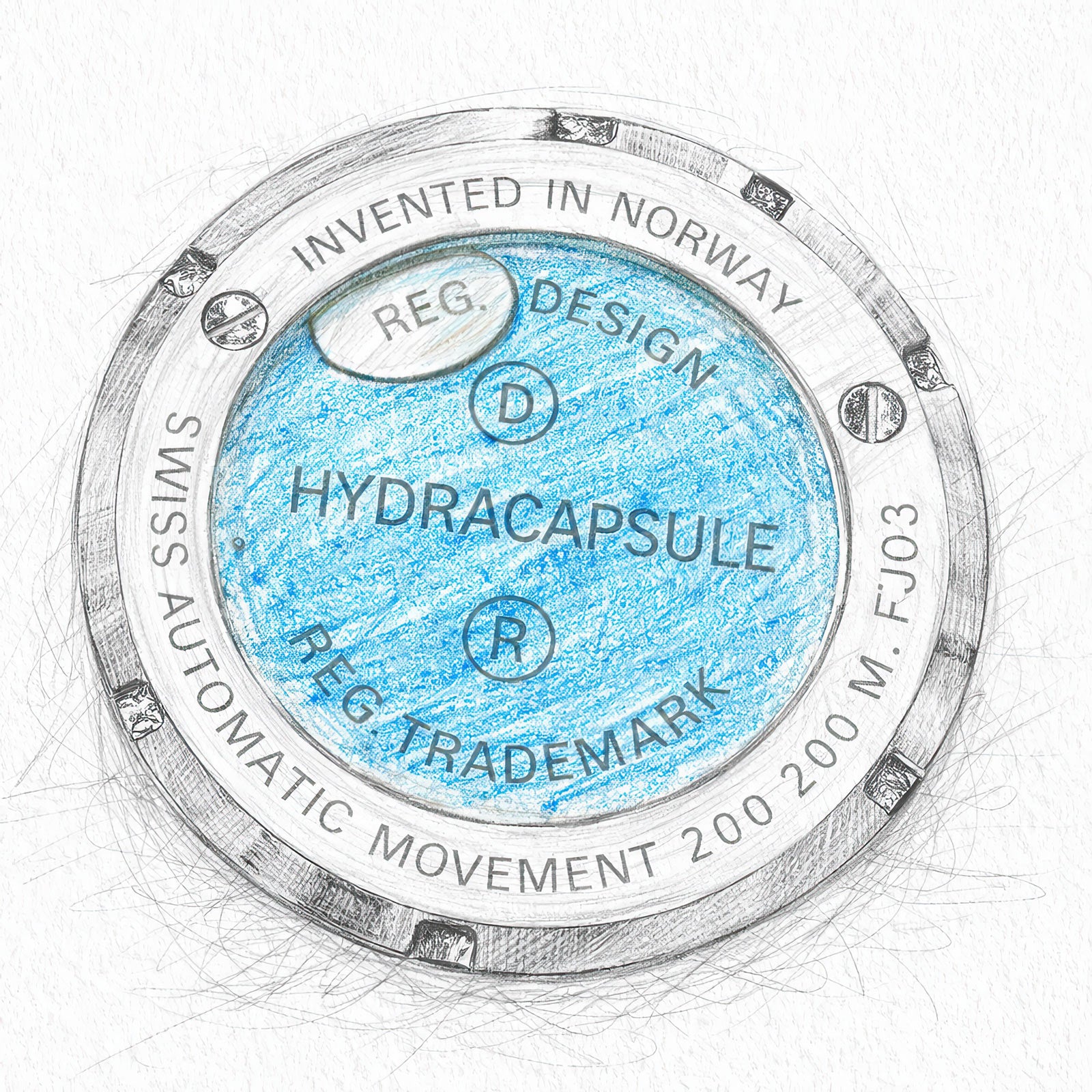 What started as a bold sketch became the Hydracapsule® — a sealed chamber on the caseback holding real fjord water from Langfoss. This one-of-a-kind feature connects story, sketch, and substance in a way no other timepiece has.